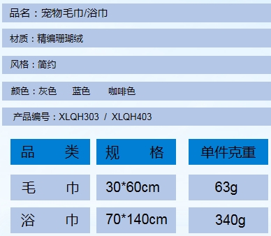 家装类毛巾/干发巾浴袍干发帽 家居类擦手巾面膜巾 宠物巾 汽车类 沙滩巾 家装类 家居类 宠物巾 汽车类 沙滩巾 宠物毛巾/浴巾 产品介绍 经典珊瑚绒面料,350gsm,面料柔软吸水,亲肤不刺激。 不易掉毛掉色,超大尺寸,极致包裹感,吸水性强 极简舒适色系,3色可选,包边.刺绣工艺,精致简约